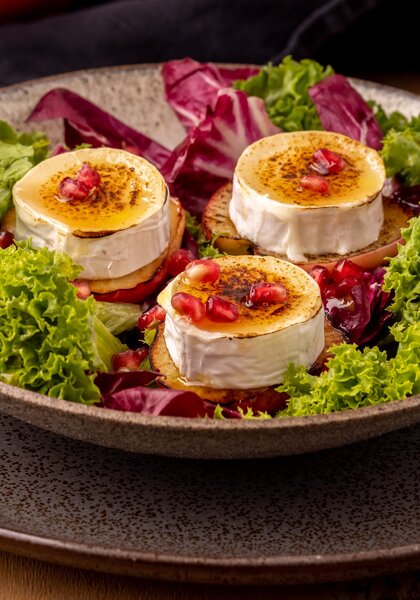 mit gebratenen Apfelscheiben und Ziegenkäse